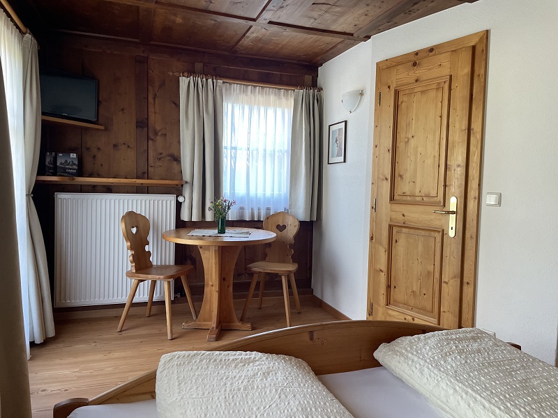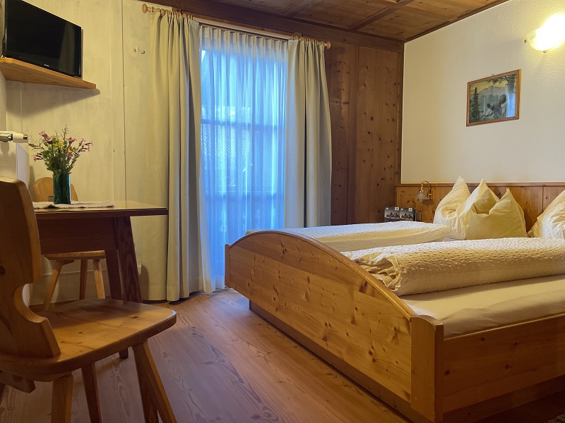 Zimmer Nr. 1: 14 m²; Doppelbettzimmer im Parterre und mit Fensterblick ins Fischleintal (seit Herbst 2022 Holzboden)
